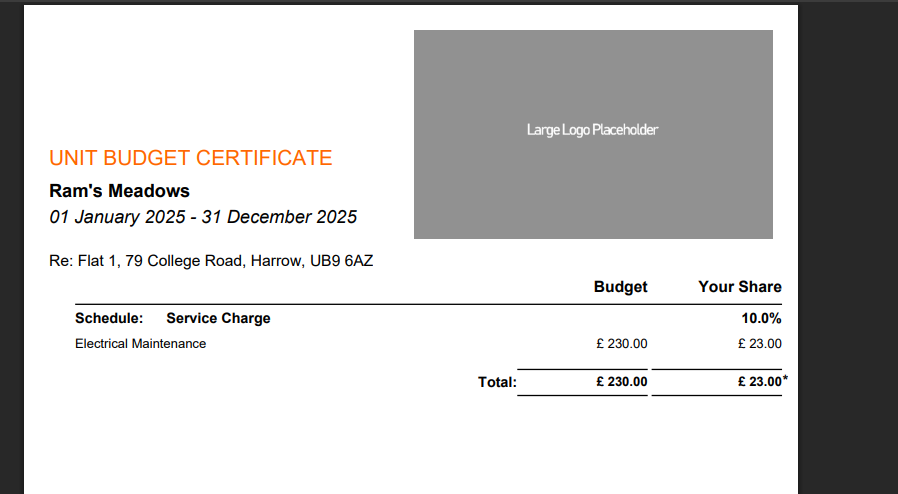 Used across many letters and certificates such as the Budget Certificate or Payment receipts.