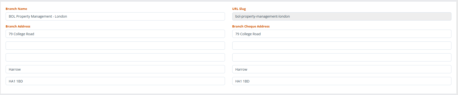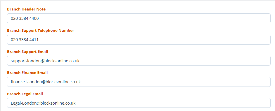 Each branch can then be customised. You can have different branch addresses and different email addresses to use.