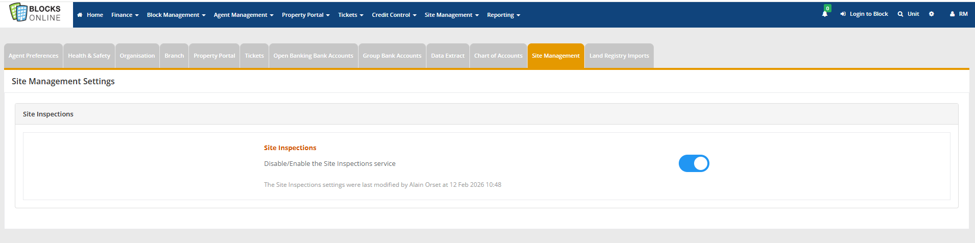 Users are able to produce a Site Inspection Report based on Tickets that have been created from doing a Site Inspection for a Block and recorded in the Ticket Module. To create a report go to the main Tickets screen accessed from the Workbench and ...