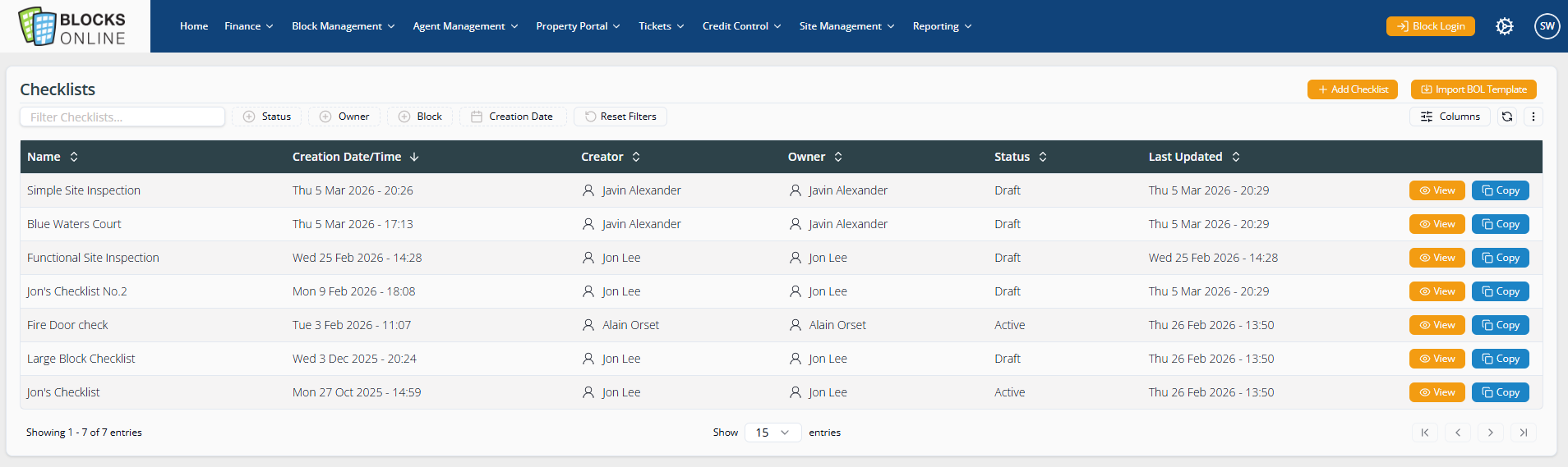 Click on the ‘Copy’ button to create a copy of the Checklist in question.