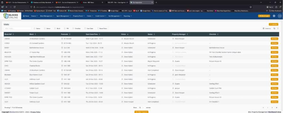 It is also the screen by which you can monitor the progress of visits, or the performance across property managers.