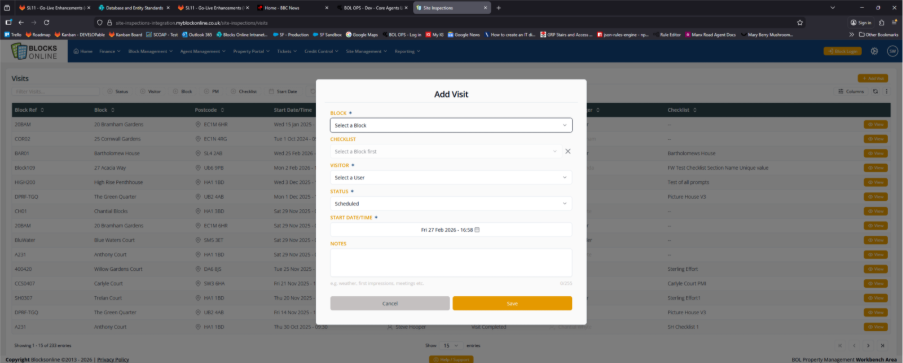 Block: Select from the dropdown the block that is going to be visited and inspected.