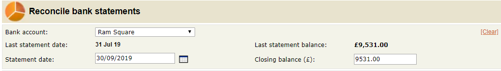 If you are doing a reconciliation up to the 30th September 19 with a closing balance of £9,531.00. The