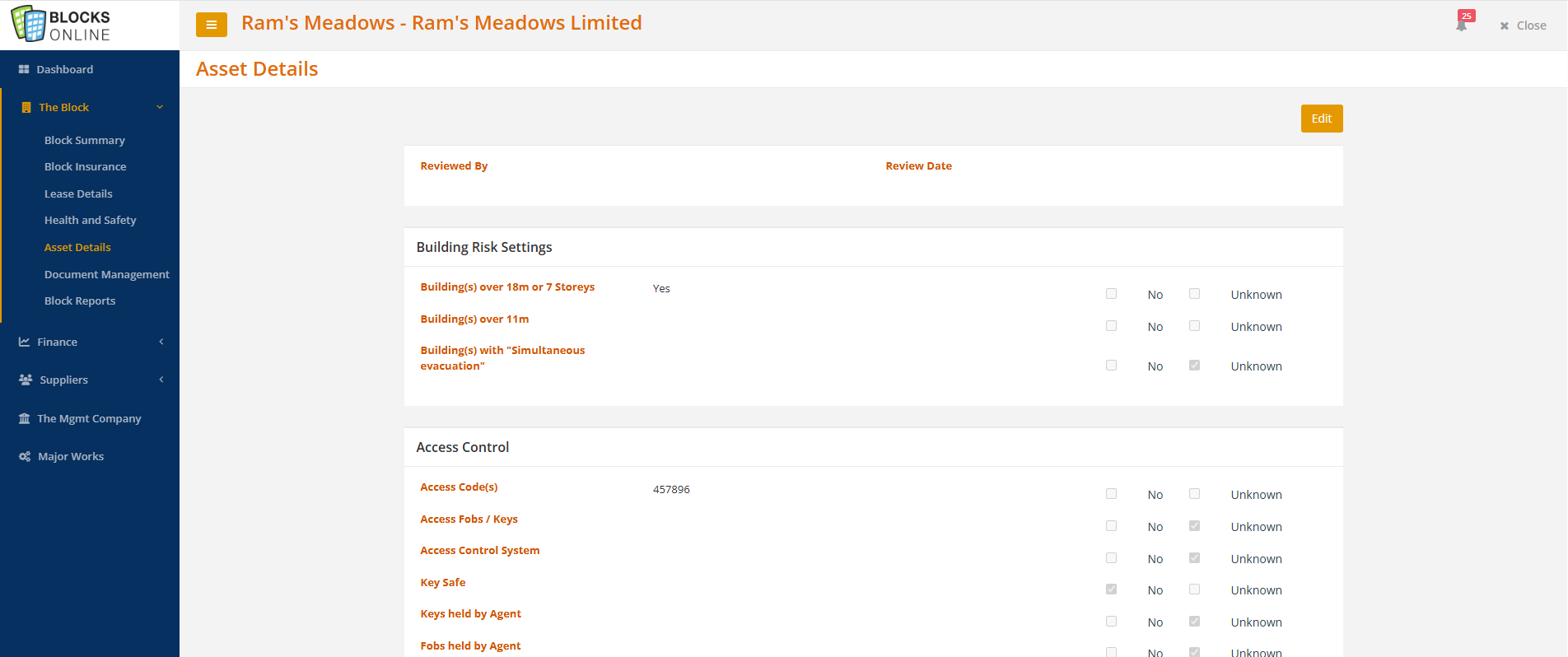 This screen is used to record key information relating to assets at the property (e.g. access control, utilities, fire equipment, lifts, etc