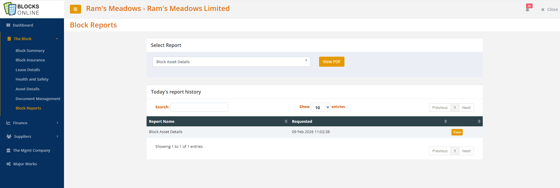 The details can then be pulled into a report called Block Asset Details within the Block reports screen