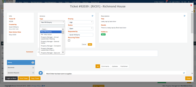 amend a ticket type assigned to an existing Ticket.